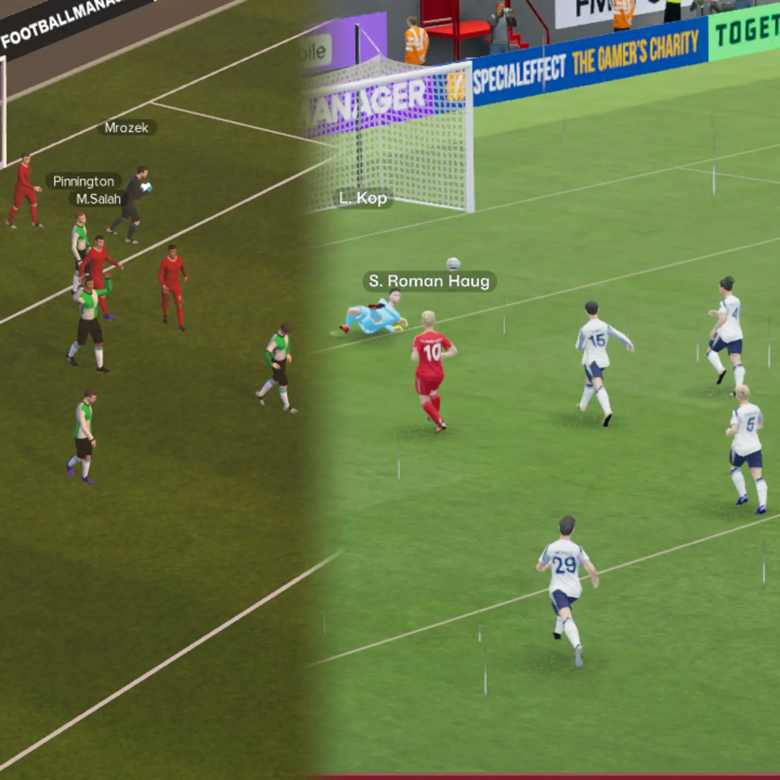 Нова графіка – це значне оновлення. Ліворуч: Football Manager 2024. Праворуч: Football Manager 26.