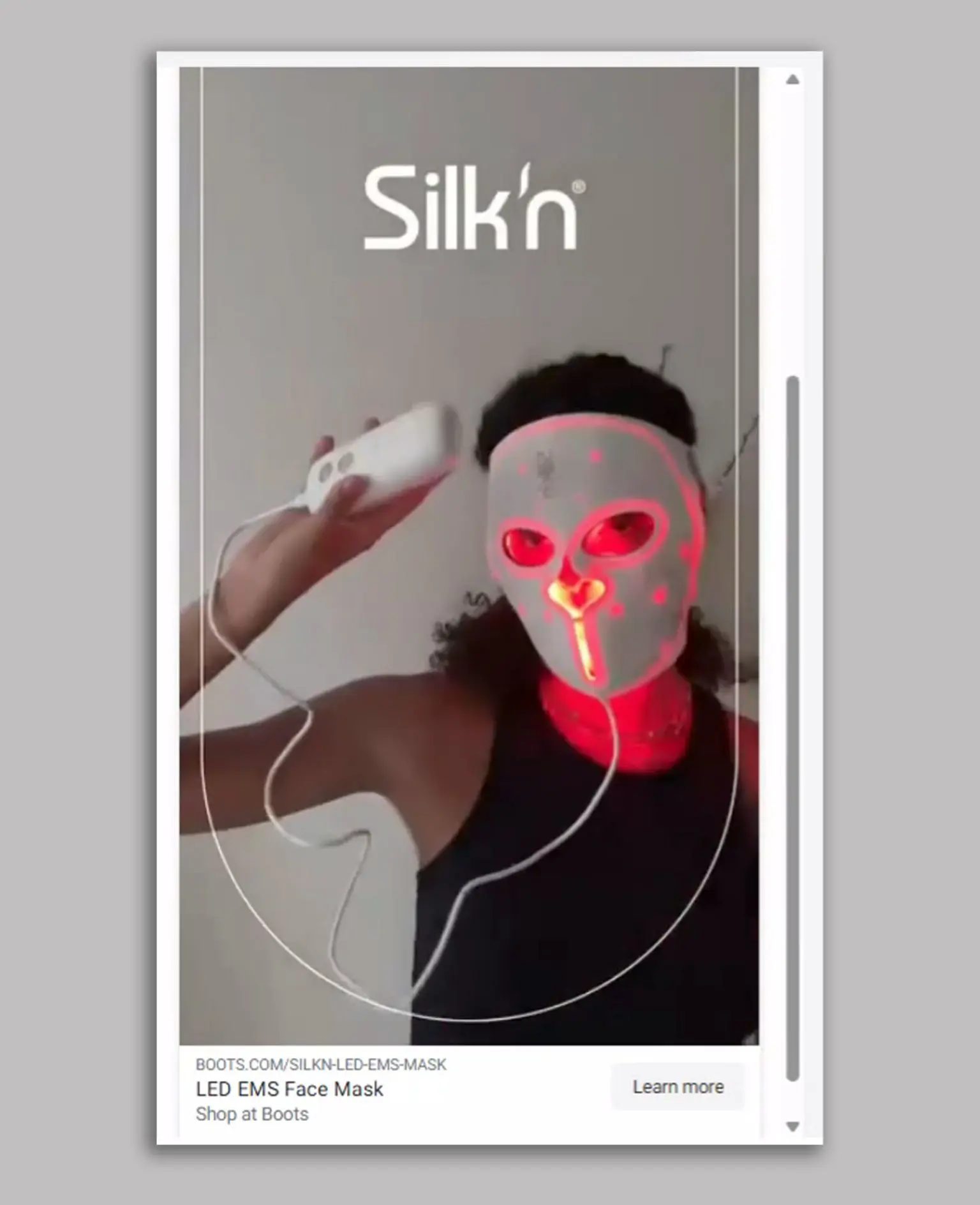 У платній рекламі Silk’n у соціальних мережах було відео жінки, яка використовує світлодіодну маску для обличчя, з підписом: «Закінчила з синім світлом, щоб допомогти лікувати мої акне та шрами».